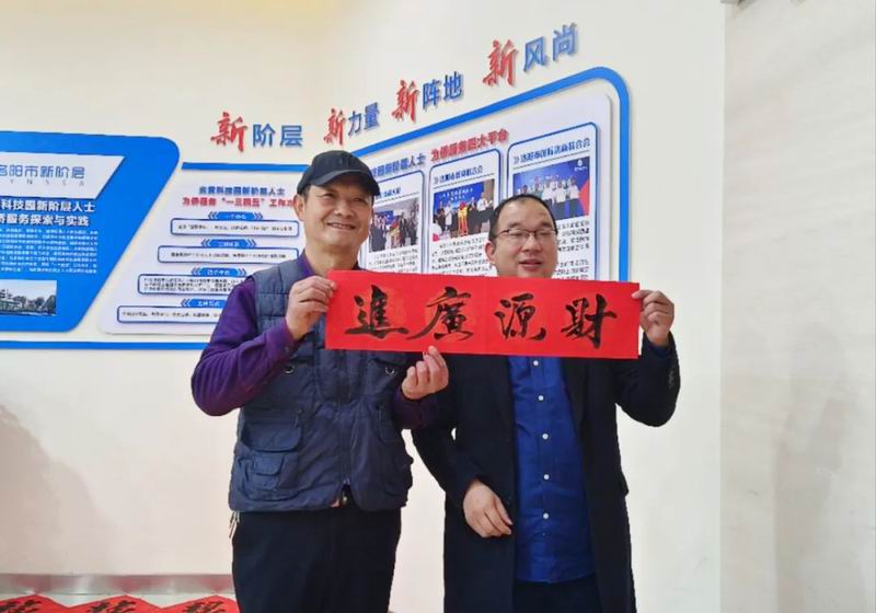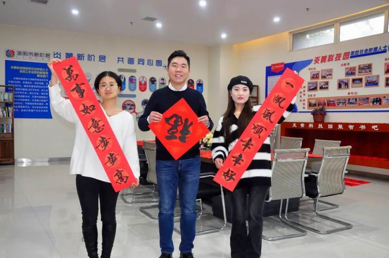 1月14日是農歷臘月二十三小年。為迎接兔年的到來,營造喜慶祥和的節日氣氛,炎黃科技園聯合黨支部書記、總經理楊哲邀請好友——我市書法愛好者黑帥獻來園區義寫春聯。